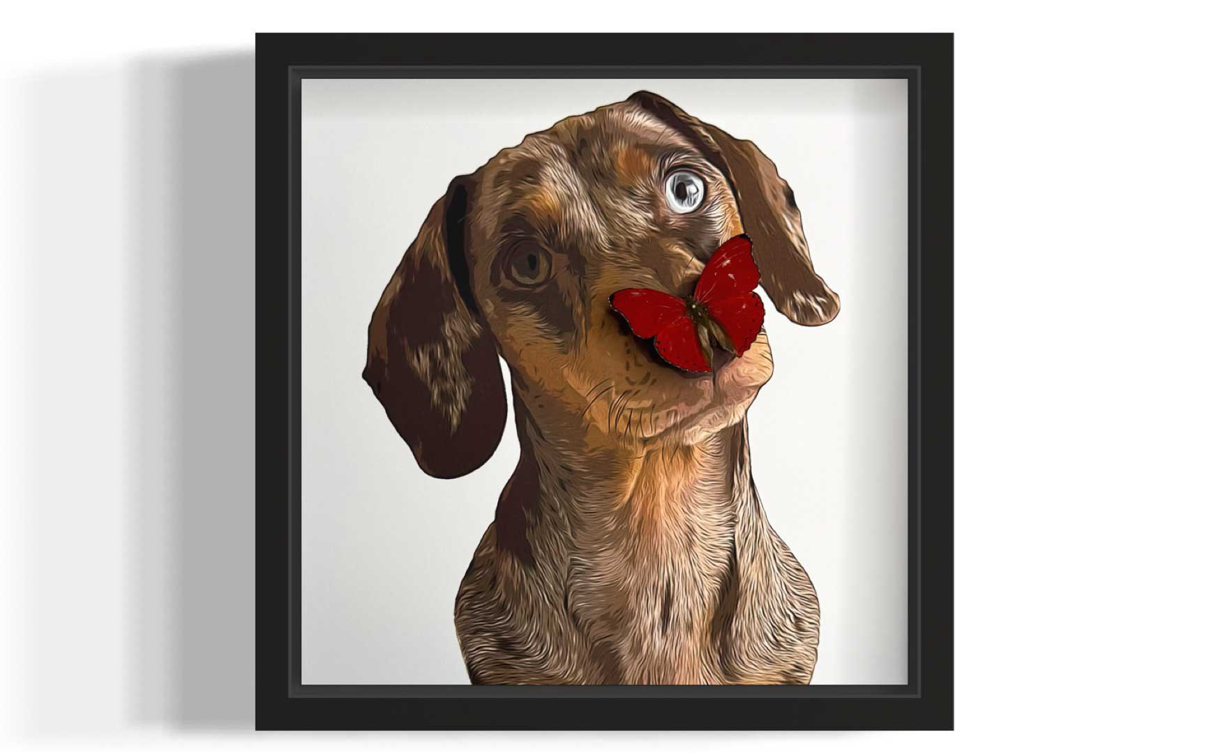 Offers a unique, personalized experience for creating bespoke butterfly art tailored to your preferences. From a single framed butterfly in your favorite color palette to detailed portraits featuring a loved pet or person with a butterfly gracefully perched atop, this collection brings your vision to life. Each piece is crafted with meticulous attention to detail, capturing personal stories and cherished memories through the timeless elegance of butterflies. Perfect for gifts, memorials, or distinctive home decor, our custom orders celebrate both nature's beauty and the personal connections that mean the most to you.