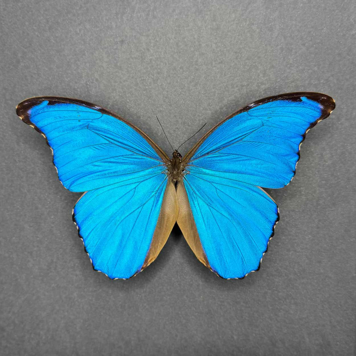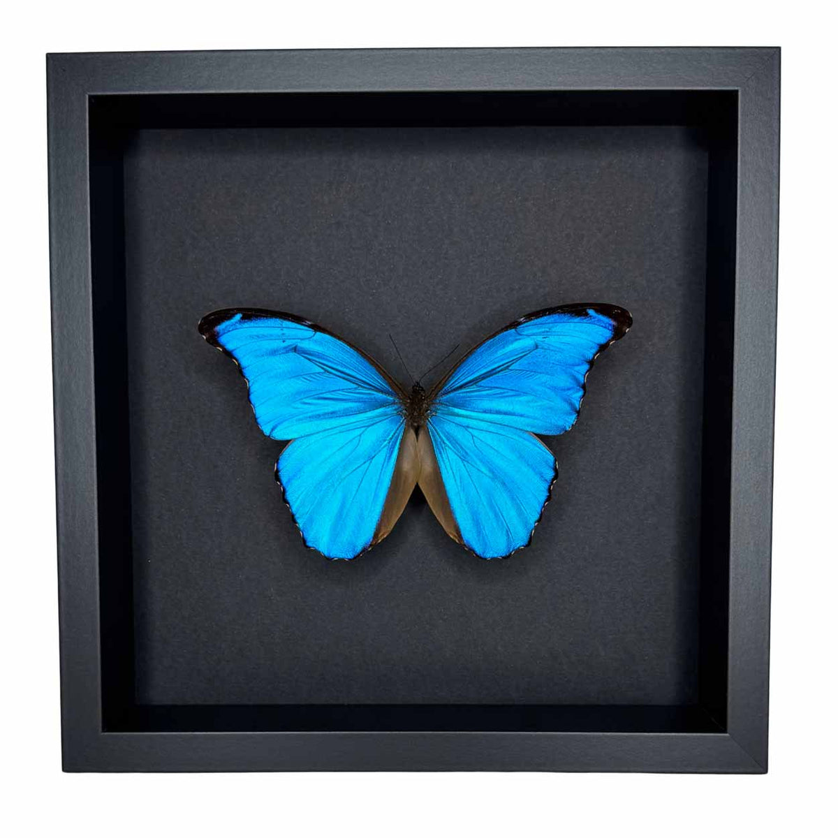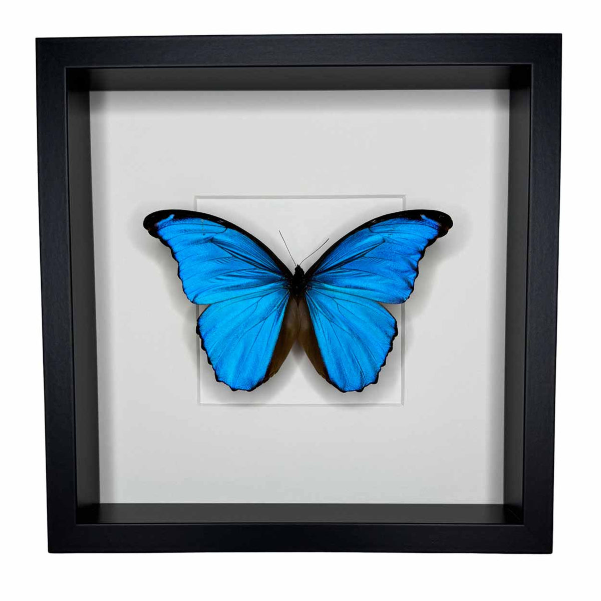 To preserve the incredible brilliance of the Morpho Didius, each specimen is carefully mounted behind anti-UV plexiglass. This premium material protects the butterfly from fading and discoloration, ensuring that its striking beauty endures for years.